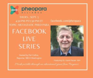 Dr. Karel Pacak, NIH Download Dr. Pacak’s slides Special thanks to Progenics for making this Facebook Live Webinar possible. See the questions asked and timing below. This webinar makes reference to Azedra, a radiopharmaceutical therapy used to … Continue reading Metastatic Pheo Para