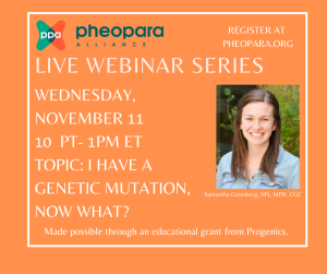Samantha Greenberg, MS, MPH, GC special thanks to progenics for making this webinar series possible through an educational grant. The information presented on this webinar is for educational purposes only and should not substitute the advice of your doctor(s) … Continue reading I Have a Genetic Mutation, Now What?